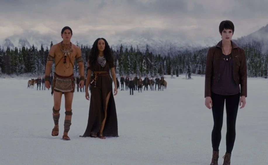 In the movie, the Uley pack arrives seconds after Renesmee's birth to kill the child. Alice, Edward and Jasper work to keep them at bay, and Alice almost gets mangled trying to protect her newborn niece.