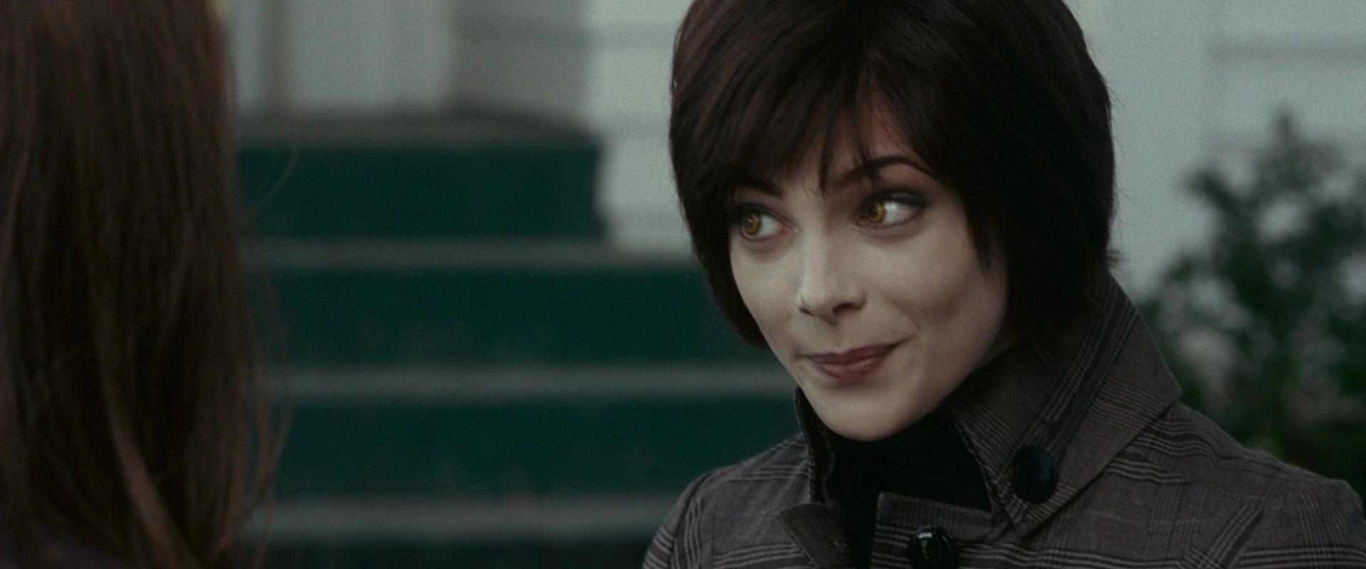 When Bella comes to visit the Cullens' house, Alice is polite and friendly, acting as if Bella is already a member of the family.