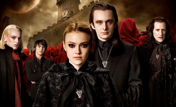Dracula • Nosferatu • I Am Legend • Dark Shadows • Vampire Chronicles • The Dark Tower • Fright Night • Lost Boys • Near Dark • Forever Knight • Anita Blake • Buffy and Angel • Blood Omen: Legacy of Kain • Underworld • Blade • Twilight Saga • The Vampire Diaries • The Originals • Night World • True Blood • Southern Vampire Mysteries • Being Human • Vampire Academy • Blue Bloods • Cirque du Freak • My Babysitter's a Vampire • Abraham Lincoln: Vampire Hunter • From Dusk Till Dawn • Young Dracula • Byzantium